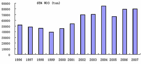中国タングステン出力コンセントレイト 1996-2007 (トン)